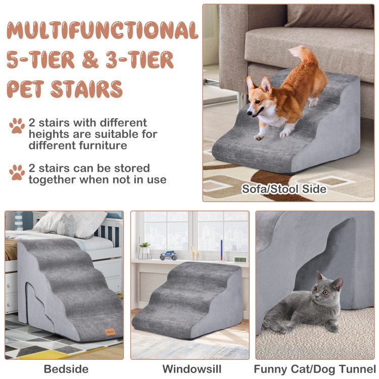 Home > 22 Inches and 11 Inches Foam Pet Stairs Set with 5-Tier and 3-Tier Dog Ramps