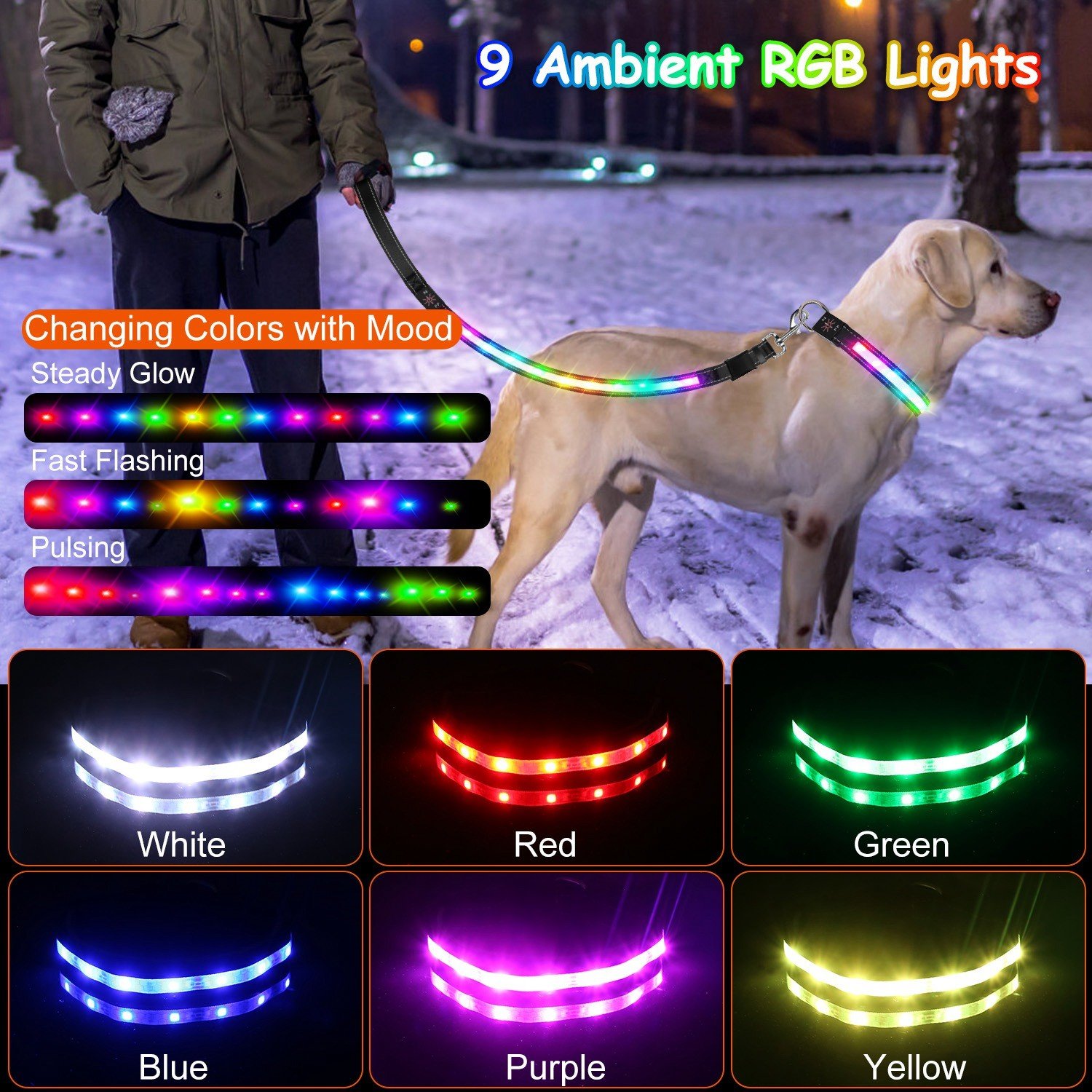 5FT Light Up Dog Leash LED Dog Leash Dog Walking Leash with 9 Light Colors IPX7 Waterproof USB Rechargeable