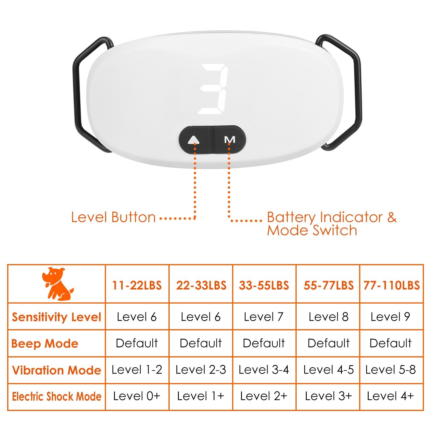 *Efficient Bark Control*:Come with intelligent sensors and sound wave recognition technology,the dog bark collar can accurately detect your dog’s barking and help it stop barking.
