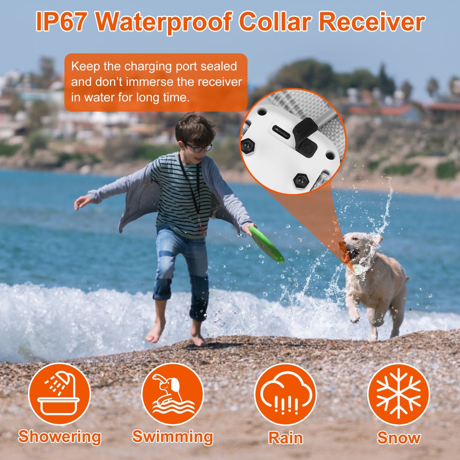 4.The IP67 waterproof receiver can work normally when your dog swims or runs in the rain