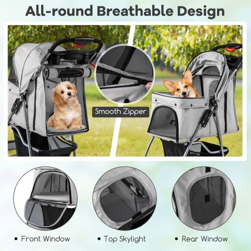 1.This pet stroller with quick-folding design and is quite simple to carry and store.