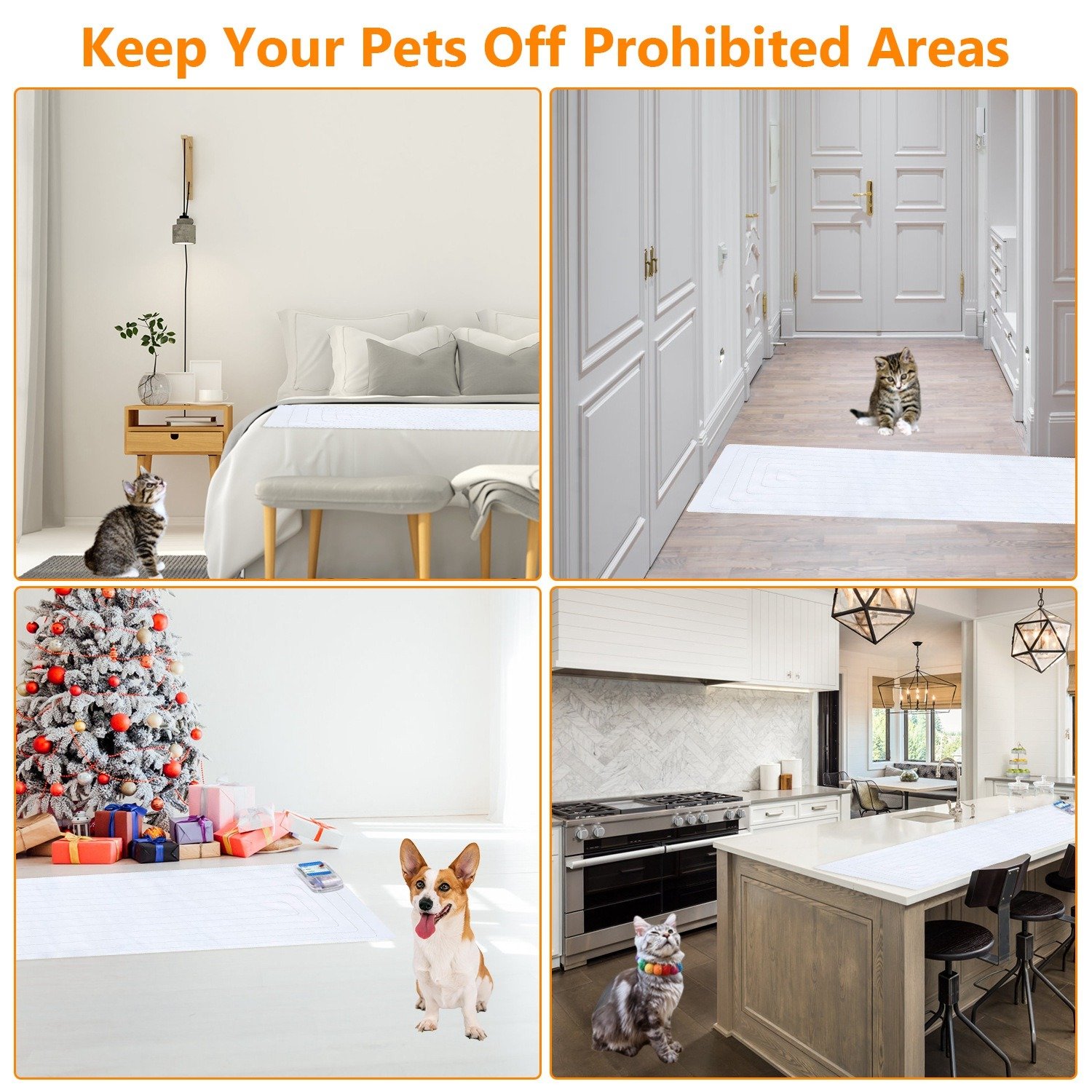 *Great Value To Protect Home*:This sensitive pet training mat can keep dogs and cats away from countertop; couch; sofa; bed; table; baby activity area and other areas that you want to keep pet-free. Once detecting cats; dogs; or other similar sized pets; a harmless and low-power electronic pulse will runs across the surface of the mat to send away pets safely.