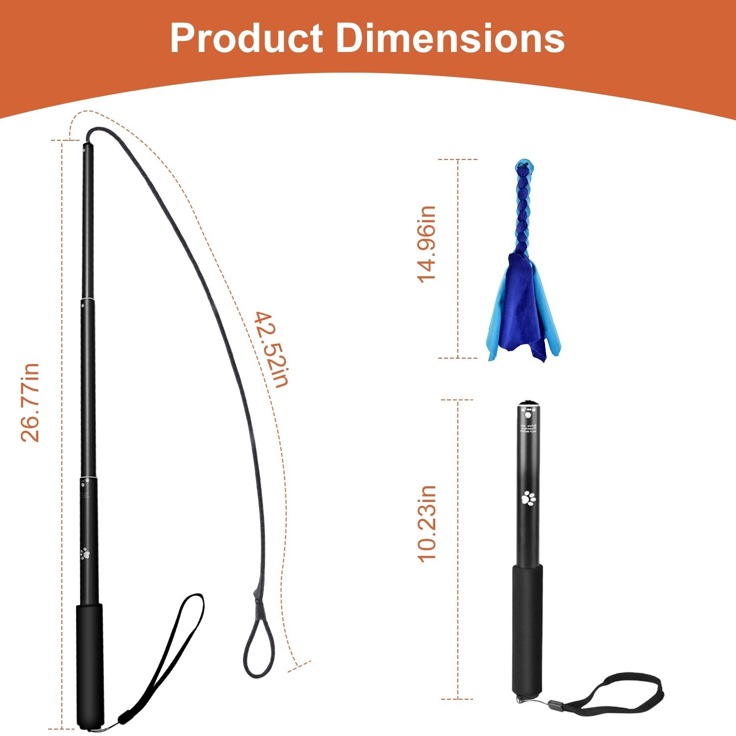 Extendable Dog Flirt Pole with Lure 10.23-26.77in Teaser Wand with 2 Replaceable Interactive Tail Toys
