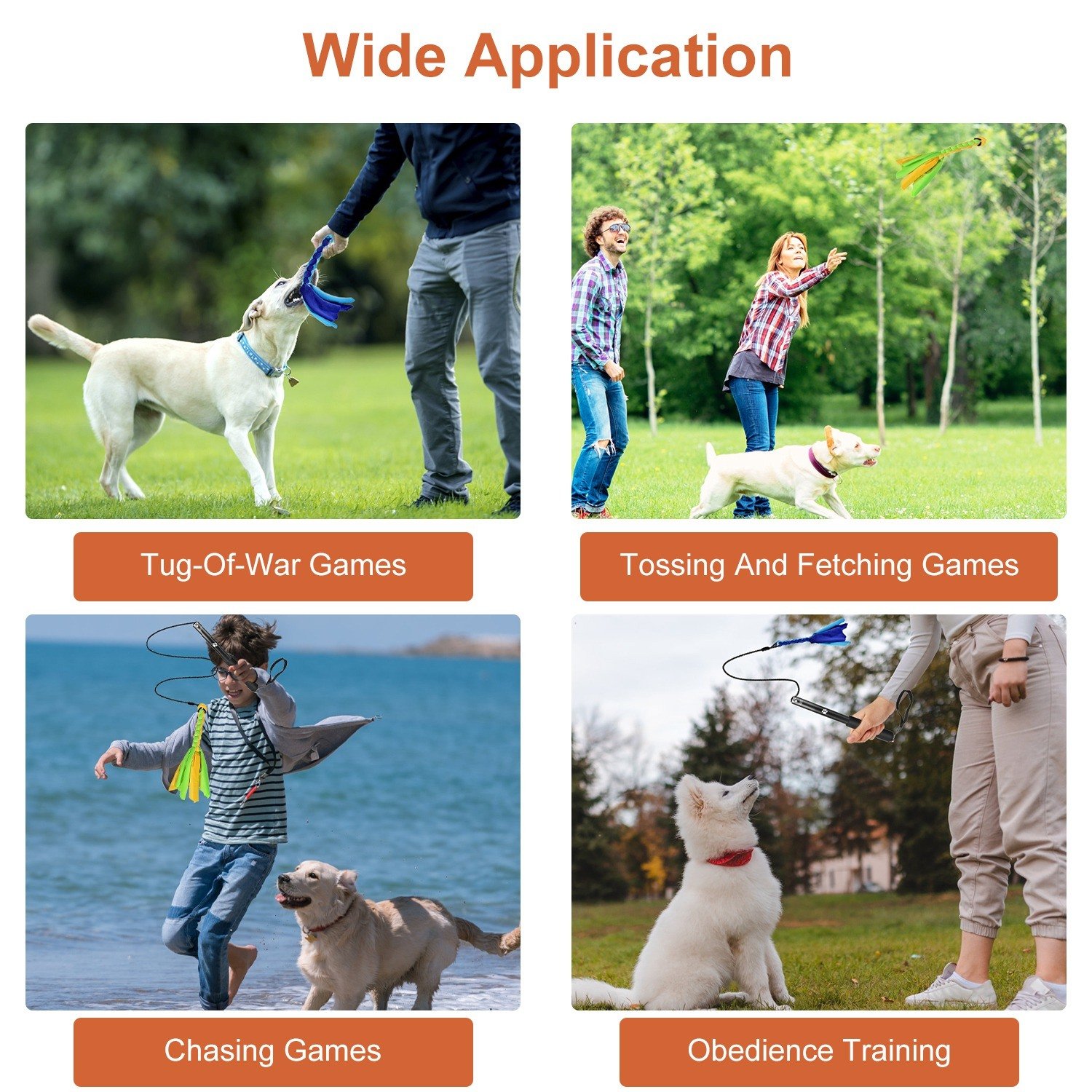 *Ideal Gift*:Our interactive teasing flirt pole with extendable design is suitable for small,medium,large dogs and cats in both indoor and outdoor chasing games,tug-of-war,tossing and fetching games,intertwining the amusing with the education. Ideal gift to bring endless fun to your dogs.