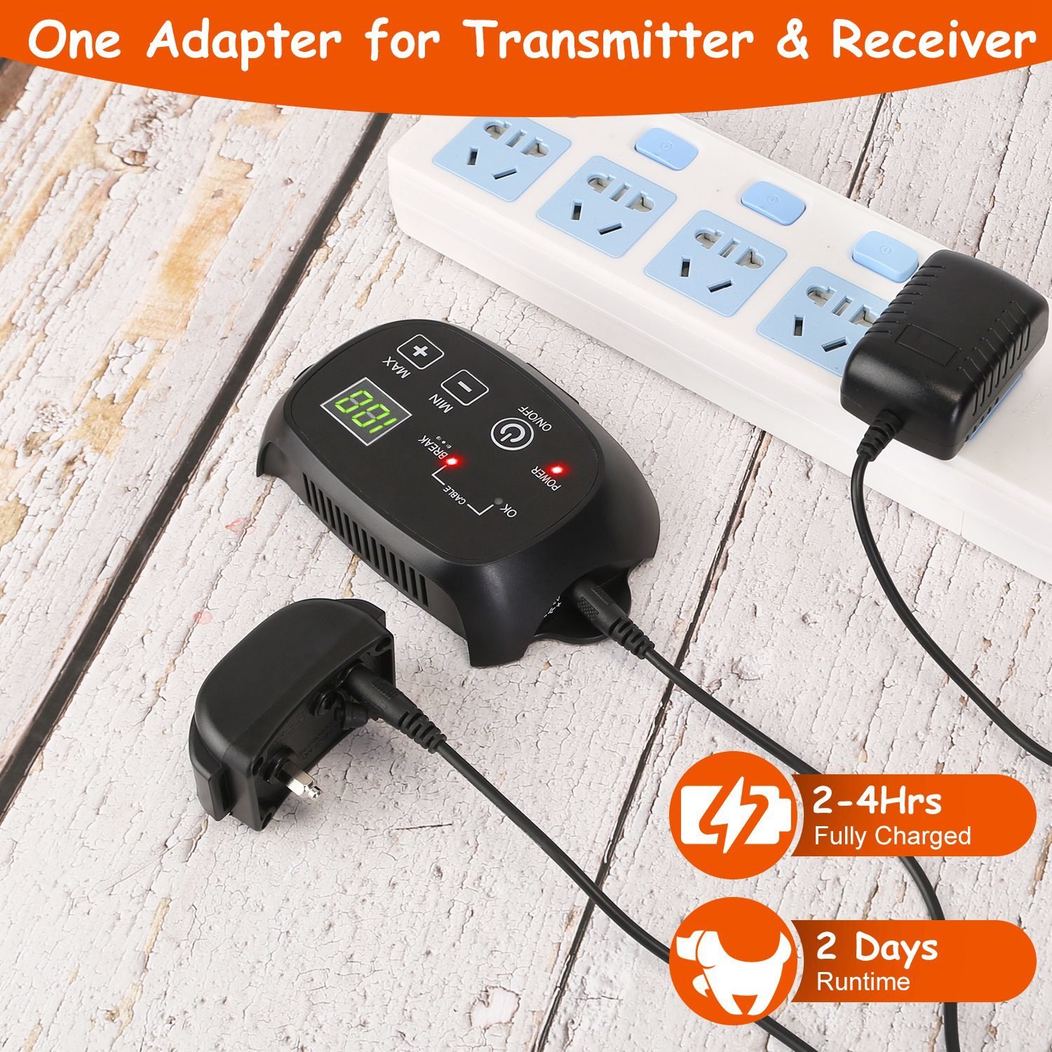 *Multiple Dogs Support*:One transmitter can pair with multiple receivers. With the 300mAh inbuilt rechargeable battery,our receiver keeps standby for around 2 days after fully charged for 2-4 hours. If the red indicator flashes quickly,it means the receiver needs to be charged. In addition,made of durable ABS material and featured with IPX7 waterproof level,our receiver greatly extends its service life,allows your dog to play in wet grass or rainy weather. Note:Our package only contains 1 receiver and 1collar strap.