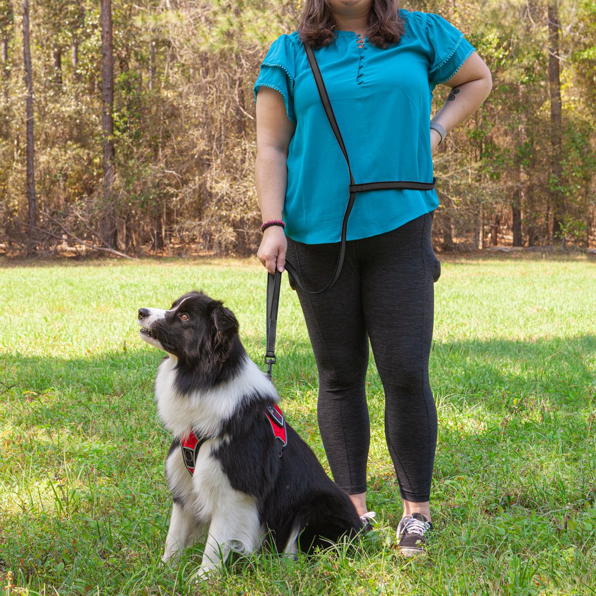 This multifunctional rubberized nylon leash is great for walking, running, or hiking hands-free, allowing enough room for both you and your pet. Tired of trying to hold your phone, coffee cup, poop bags, and dog leash all at once while your pup tirelessly pulls you toward new adventures? With our 8 feet long no-hands dog lead you don’t have to worry about uncomfortable walks or limited movements anymore. The adjustable rubber-infused nylon handle can be worn over the shoulder, around your waist, or wrist; it can also be used as a standard dog leash. The second handle near the swivel clip gives you more control during training, walking on a busy street, or in traffic. Easy-to-grip non-slip handles Stylish black swivel snap hook 7 colors to choose from 3/4in width x 8ft length