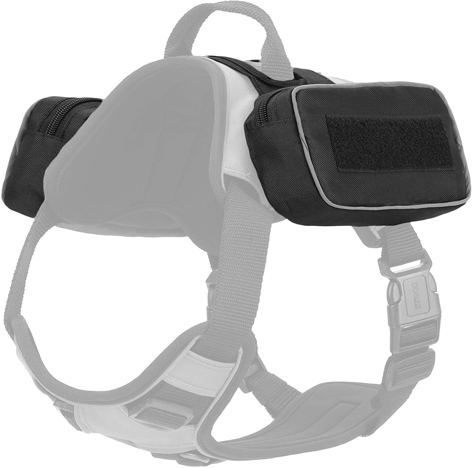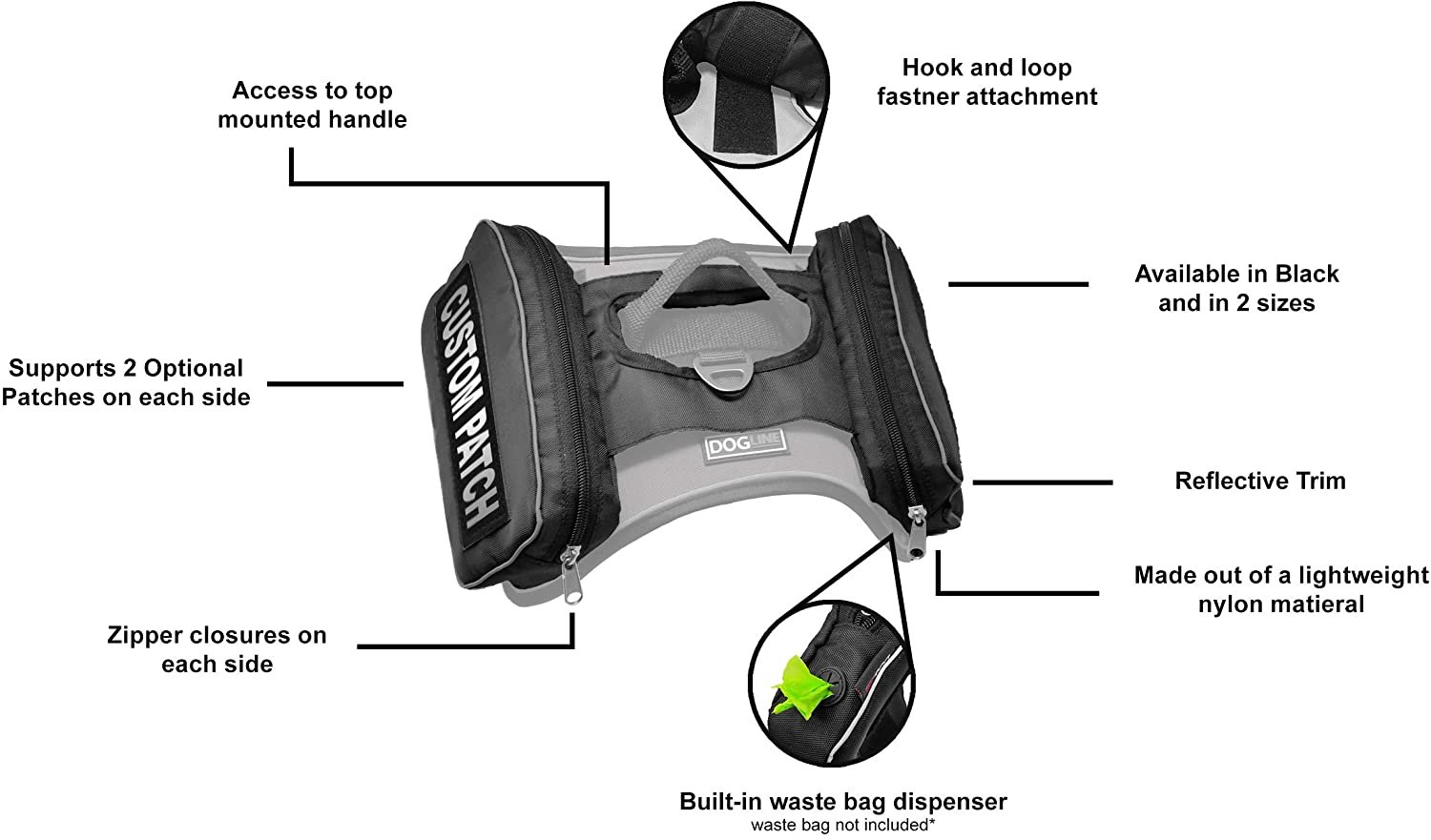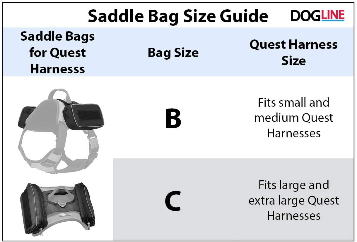 These optional saddlebags are a for the Quest Harness and are ideal for carrying treats, medications, a first aid kit, and much more. Made of lightweight nylon material with zipper closures. Easy to take on and off with the help of hook and loop fastener attachment. Bags offer a large main storage area and built-in waste bag dispenser. Bags also feature space for removable reflective patches (sold separately). For Quest Harness Sizes - Girth 21-25" + Girth 25-31" Size B - L5.25" x W1.75" x H3" For Quest Harness Sizes - Girth 32-40" + Girth 36-45" Size C - L7.25" x W1.75" x H4" Colors Black
