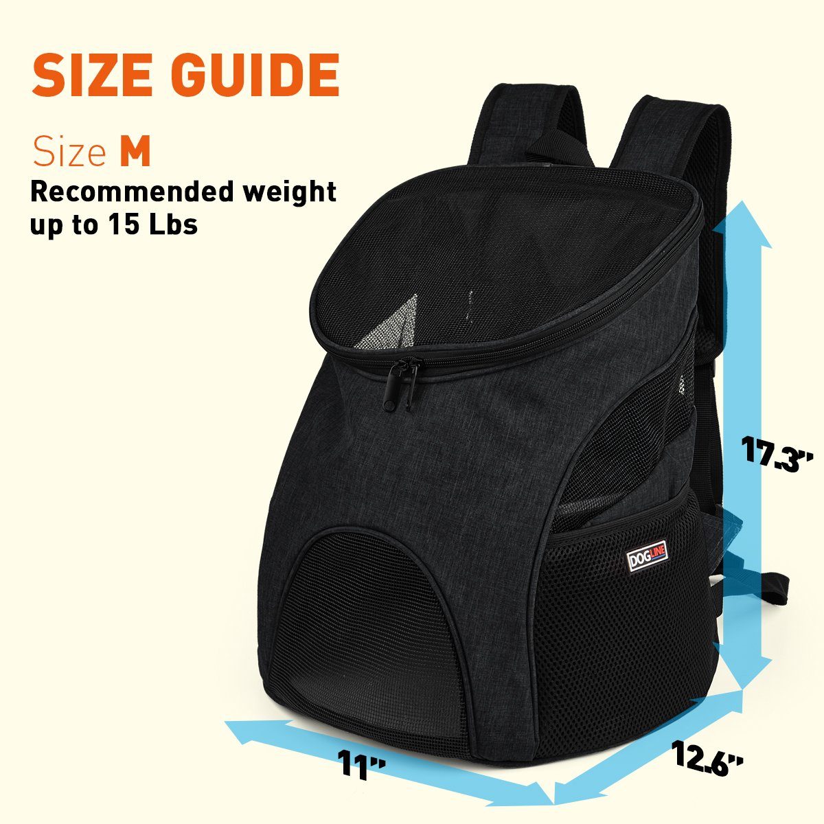 COMFORT, EASE, SECURITY: Our Personalized soft-sided Pet Carrier Pack offers an easy, secure and comfortable way to travel with your pet. It also features an included removable floor for easy cleaning, a light, and breathable mesh design, with reinforced waist straps to ensure the comfort of both you and your pet. AVAILABLE SIZES: Small L 8.5” x W 11.6” x H 13.8” for up to 8 lbs Medium L 11” x W 12.6” x H 17.3” for up to 15 lbs