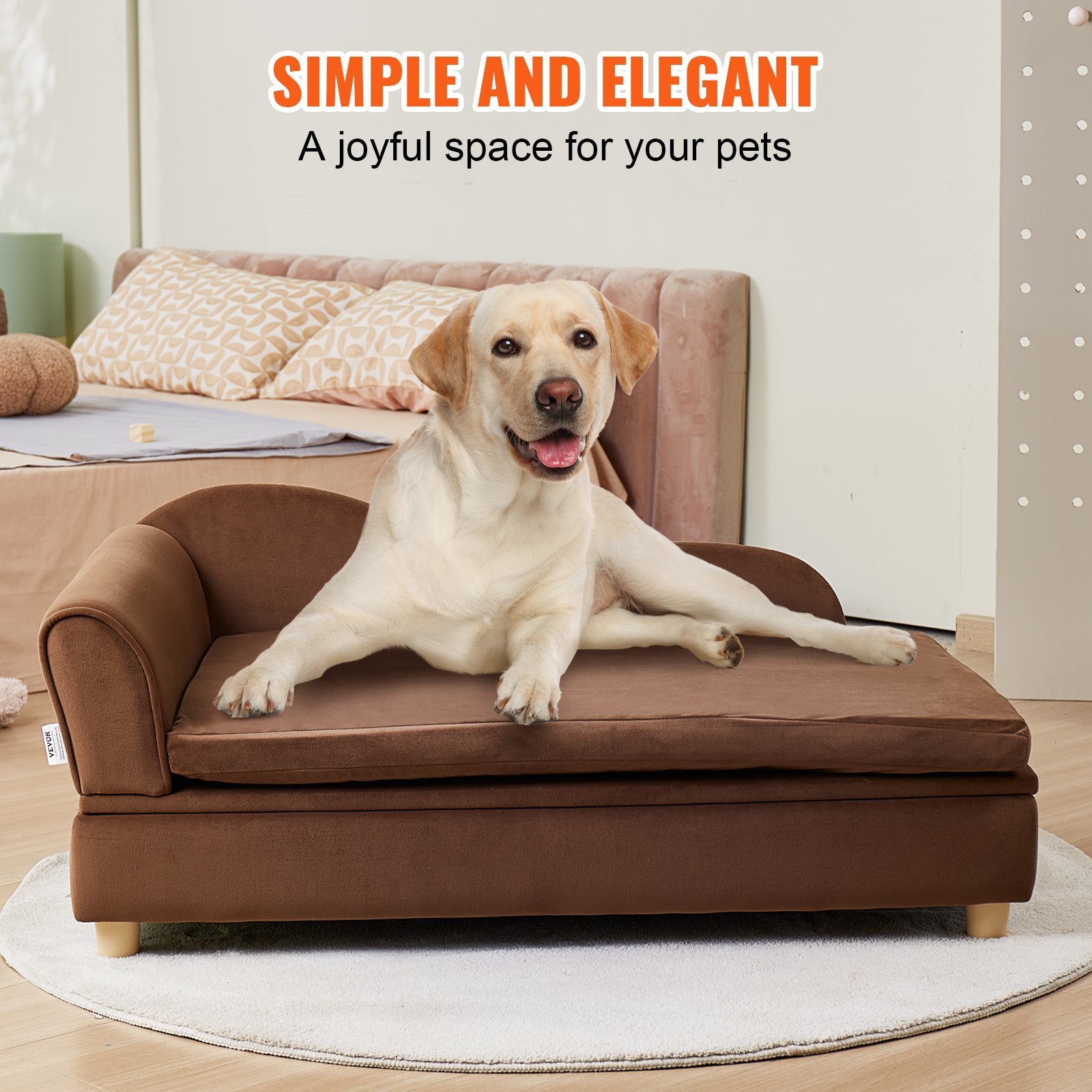VEVOR Pet Sofa, Dog Couch for Large-Sized Dogs and Cats, Soft Velvety Dog Sofa Bed, 110 lbs Loading Cat Sofa, Dark Brown